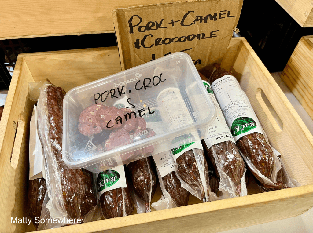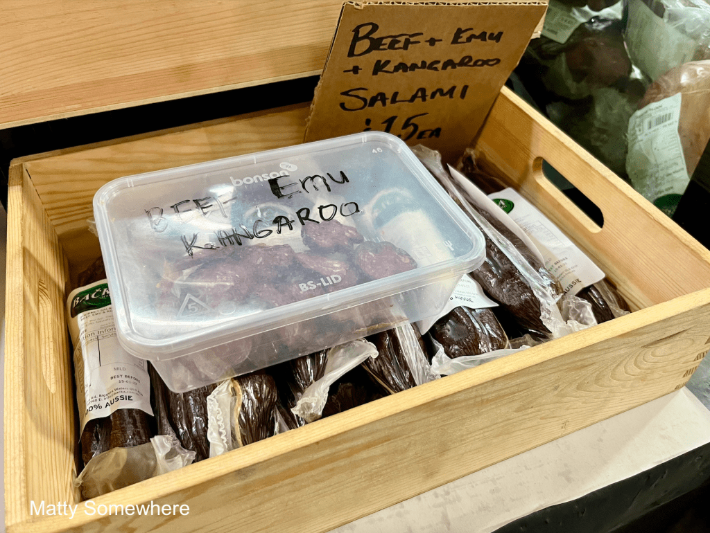 Of course, I had to sample some classic Australian and Far North Queensland meats. I tried the pork, camel and crocodile salami, which had a pleasant spicy kick. The beef, emu and kangaroo salami, however, was especially delicious, so I didn’t hesitate to take one home.