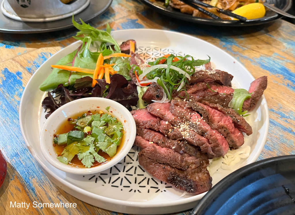 The Crying Tiger is a bold grilled beef dish, rich with smoky flavour and paired with a tangy, spicy dipping sauce. Its tender texture and vibrant seasoning make it deeply satisfying. While it’s served differently as I’ve seen before, the beef is cooked mid rare, its delightful, and the dipping sauce is what really makes this dish shine.
