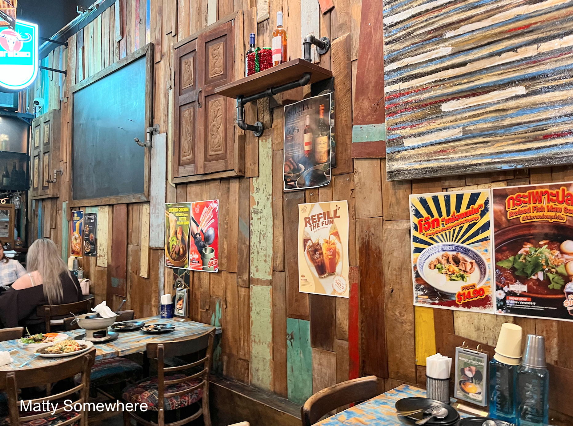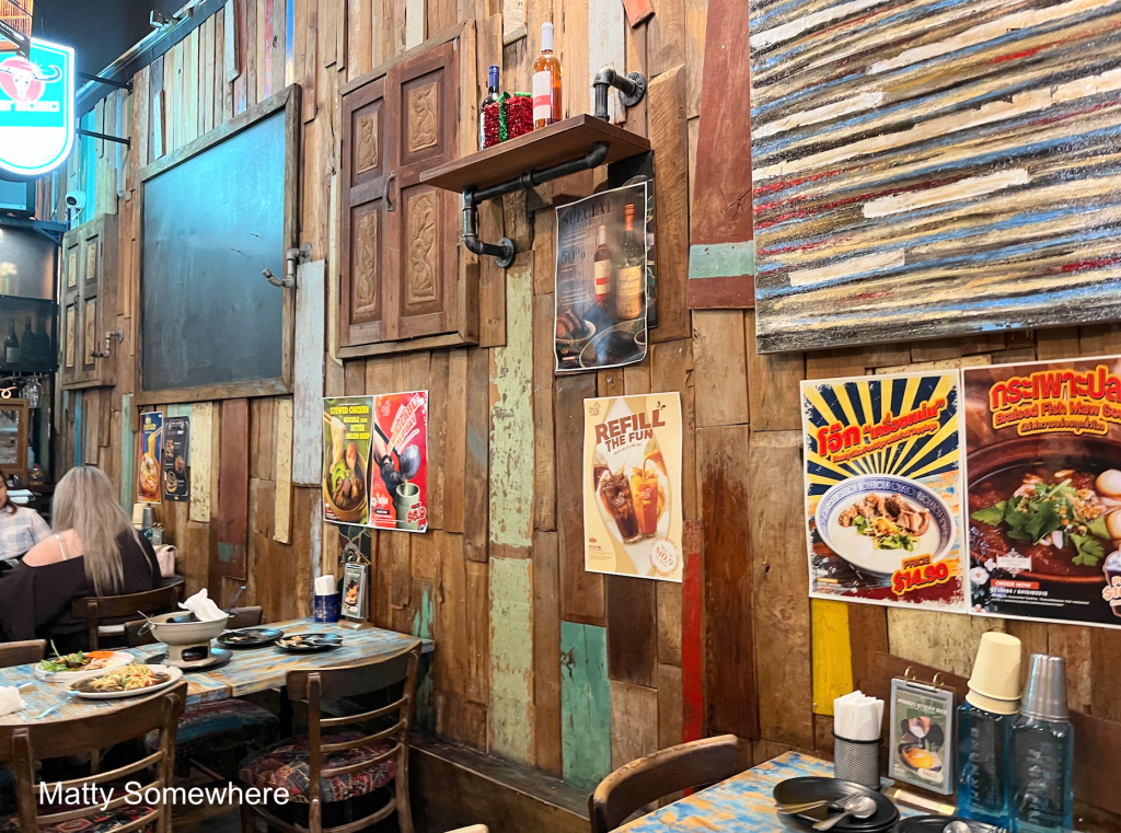 The venue is distinctive, showcasing bold, old style design elements inspired by Thai aesthetics. Rich textures, vibrant colours, and traditional touches create an inviting atmosphere that feels both authentic and memorable, reflecting classic Thai cultural charm.