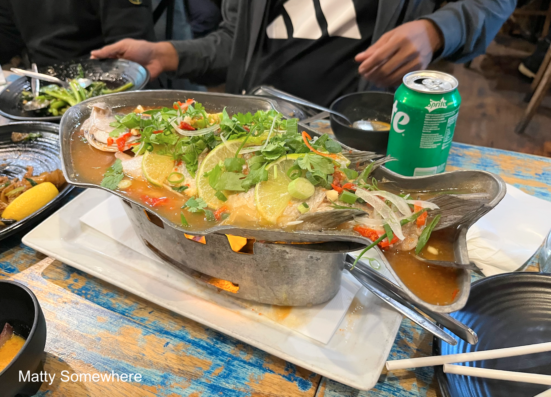 The Pla Nung Ma Now features a whole barramundi gently steamed to preserve its delicate texture, then dressed in a vibrant lime sauce. The dish balances tangy citrus, garlic, and chilli, creating a refreshing yet slightly spicy flavour profile. While I am not a fan of ‘barra’ (I find it overrated for a fish…) but the flavours work well and it’s a great dish with the zesty and punchy flavours of lime and chilli.