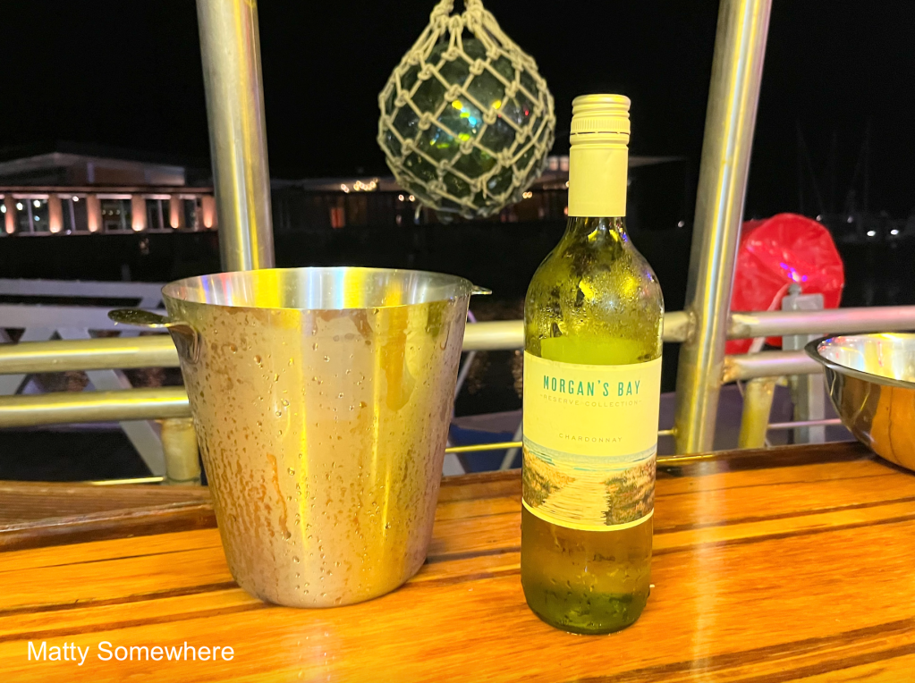 We decide to order a bottle of Morgans Bay Chardonnay to share, thinking it will complement our fresh seafood, and it turns out to be a perfect match.